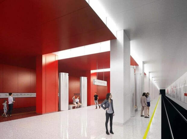 Как отмечается, платформу оформят необычно. Половина станции будет выполнена в ярко-красном цвете, напоминая советский флаг, а другая половина – светло-серая. При этом на потолке установят светильники, которые будут «сшивать» половины платформы, как нити.